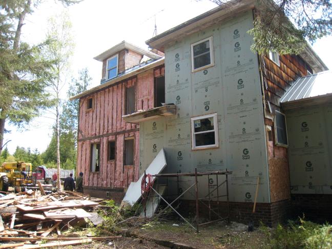 Refinish Exterior of Log Home. Install Siding and Finish on Addition to Match. Create New Entry